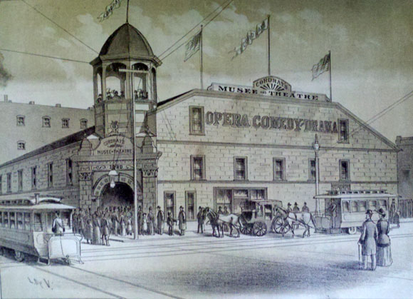 Cordray's Musee Theatre, a popular vaudeville house in downtown Portland, as it appeared in the late 1880s. (Image: The West Shore magazine)
